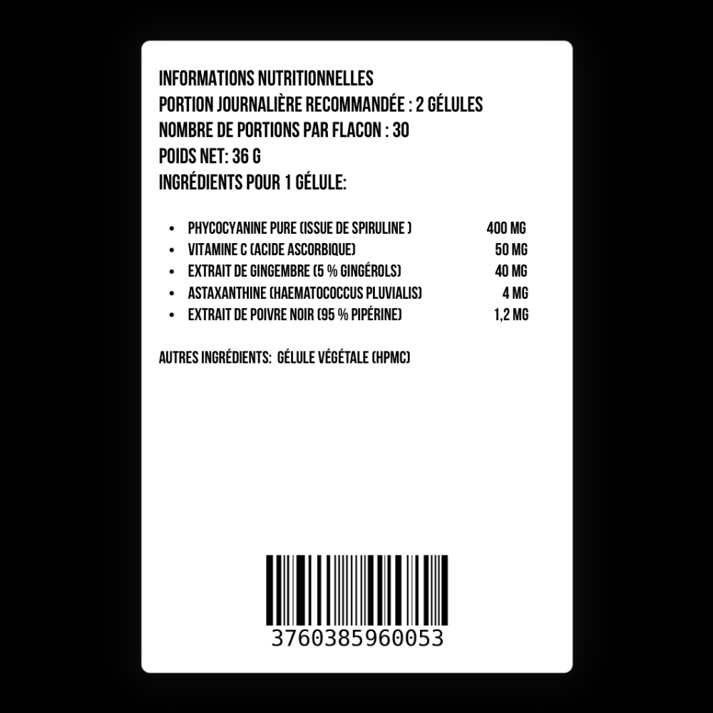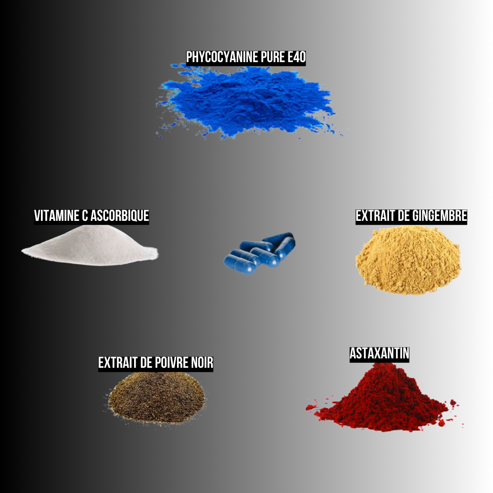 Oxygénation : La phycocyanine peut augmenter l’hémoglobine et améliorer l’oxygénation du sang, ce qui aide le corps à transporter et utiliser l’oxygène plus efficacement, à avoir + de force, d’endurance, + de clarté mentale et de nombreux bienfaits. Les études réalisées sont à dose minimum et présentent tout de même des résultats, le Phyco+ de chez ANKA présente des doses bien plus importantes de phycocyanine, et donc + d’effet tout en restant dans des doses sans danger.